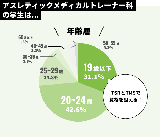 日本スポーツ協会公認アスレティックトレーナーは、スポーツトレーナーとしての最高峰の資格。TSRは資格取得のためのオリジナルシステムを導入し21年連続で全国No.1の最多合格者数の実績を誇ります。(※日本スポーツ協会「スポーツ指導者に関するお知らせ」より)