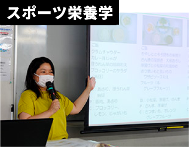 様々な選手の栄養サポートができるように基礎栄養学や身体の仕組みを理解する演習授業。
